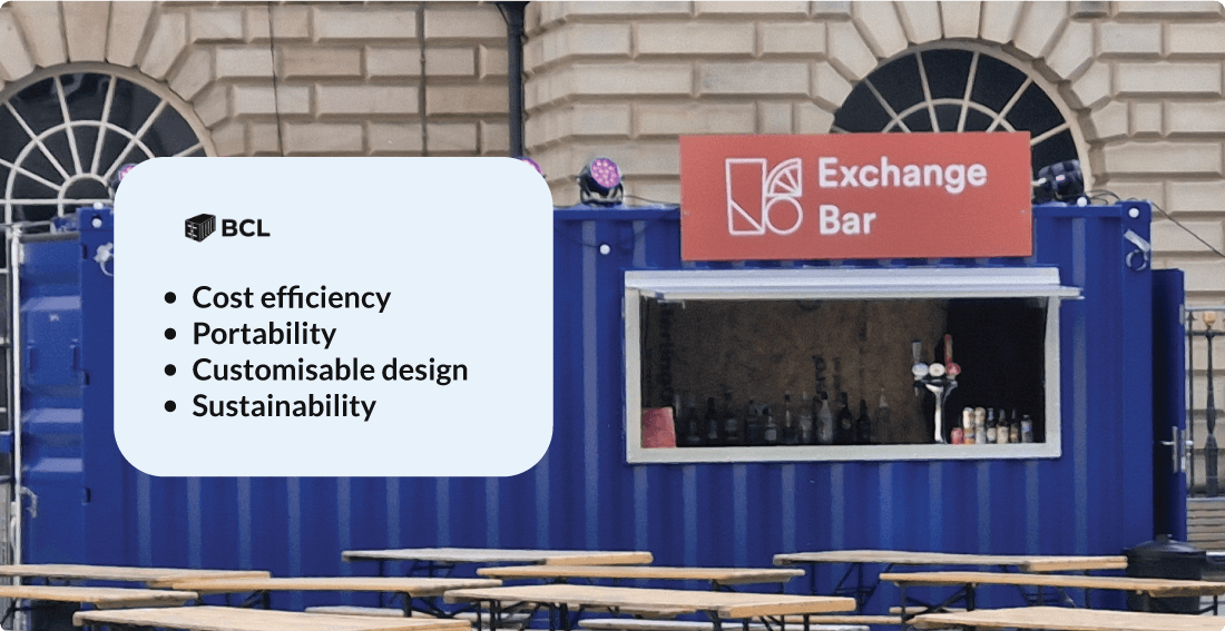 • Cost efficiency - When compared to renting or purchasing a premises, a container café is significantly cheaper. Also, you’ll own your container once it’s built, meaning this is a long term investment.
