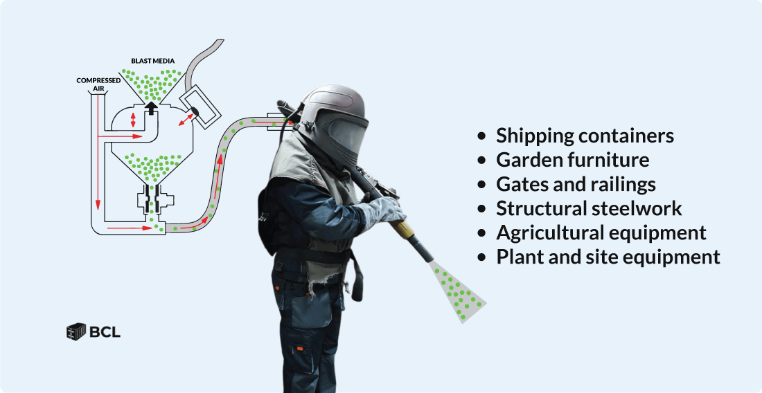 At BCL Containers, shot blasting is a key part of our container conversion process. Before we repaint, sell, or convert any unit, we strip it back to bare metal using shot blasting, ensuring the steel is completely clean and properly profiled. This means any new paint or coating bonds directly to the metal rather than sitting on top of degraded material, significantly extending the life of both the container and its finish.
