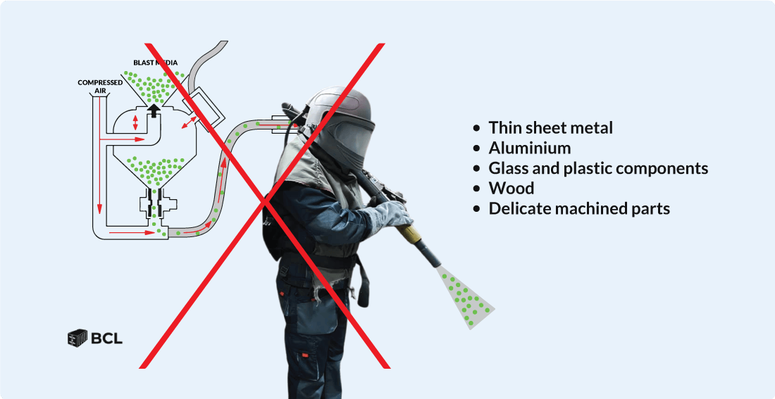 Shot blasting works brilliantly on robust steel and iron, but it isn't suitable for everything. Materials and items that are generally not compatible include: